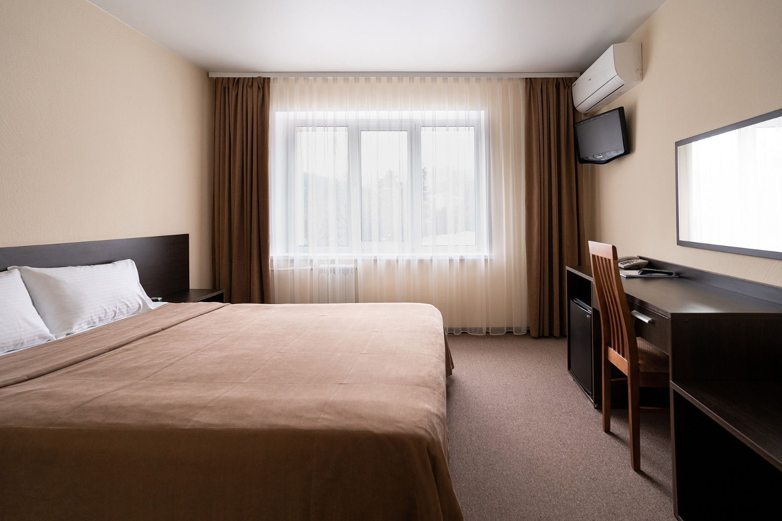 Парк-отель представляет собой 4-этажный комплекс с номерным фондом в 50 номеров различных категорий — от стандартов до люксов и двухкомнатных апартаментов. Номера отеля оснащены питьевой водой, чайно-кофейным набором, гигиеническими принадлежностями и другим необходимым для проживания.