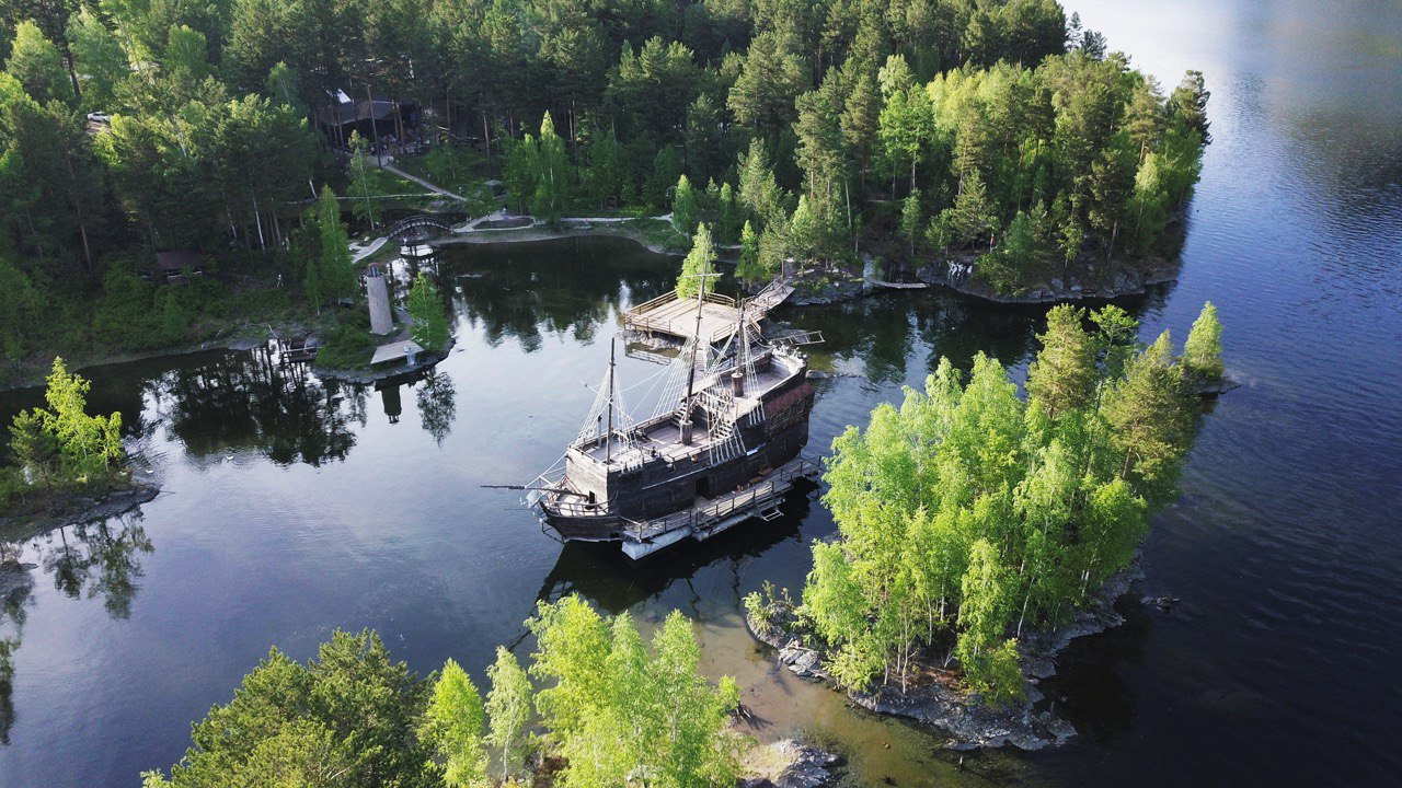 Легендарный парусник «Чёрная жемчужина» с пиратами на борту, пещера хоббитов и гномов, добывающих сокровища, друиды варящие зелье и другие персонажи ждут вас!